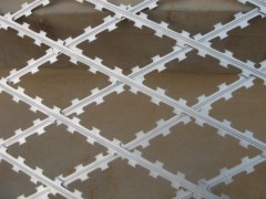 螺旋型交叉刀片刺网是在两条刀片刺网之间以不锈钢片和镀锌钢片强力夹扣,展开后即呈交叉状,美观又实用。