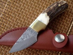 野鹿角手柄 日本进口大马士革钢限量版小直刀 全手工精制 经典收藏大马士革刀