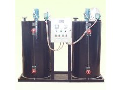 在电力、石油、化工、冶金工业、环境工程、水处理等领域中常需要将某种液体连续自动地注入到另一种液体中成为一种混合液,或者使加入的药剂与液体中存在的某种组分发生化学反应,以达到预期的工艺要求。未达到最佳效果,在工况变化的情况下,对所加化学药剂量自动跟踪调节控制加药速度,因此在这种装置中我们采用了先进的自动控制方式来控制加药量。这种加药装置结构简单、安装方便。它主要由计量箱(药剂贮罐)、计量泵(加药泵)、自动控制系统、连接管路等组成。这些设备一般都集中安装在一个加药间内,自动加药装置将计量箱、计量泵、自动控制系统一体化,即安装在一个底座上。制造厂完成设备购置、制造、组装、调试、试运行,用户只需将组合式自动加药装置安放在加药间后,将计量泵出口与加药管路、计量箱进出口与进水管等连接好,并将控制柜电源和检测仪表信号送到控制柜就可以起动、投入运行。这样可以大大减少现场施工工作量,避免了中间环节繁多引出的差错,有效地保证工期和工程质量,减少用户的麻烦和损失。
