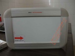 本产品采用进口树脂白板,漆膜均匀,色彩饱和,表面光滑,易写易擦,并可以根据客户需求在板面划表格贴文字,线条永久不褪色.边框采用进口铝材,铝材壁厚1.5MM,铝边框厚25MM,铝边宽41MM,专业性笔盘,具有固定性,不可以移动