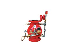隔膜雨淋阀采用信号蝶阀作为控制阀门,确保系统更安全可靠,它是利用隔膜运动实现阀瓣的启闭,由隔膜将阀分为压力腔和工作腔。由于上、下受水力作用面积的差异,实现密封。当发生火灾时,火灾探测器发出信号,通过火灾报警器(或消防控制中心),实现自动打开隔膜雨淋阀上的电磁阀(也可手动打开快开阀),使压力腔的水快速排出,泄压后作用于阀瓣下部的水迅速推起阀瓣进入系统管路喷水灭火。同时水流向报苦管网,使水力苦铃发出报等声,开通压力开关,给值班室发出信号或启动消防泵供水。