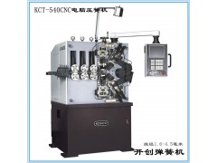KCT-540五轴数控高速卷簧机,是开创机械自主研发并产销的一款五轴电脑压簧机,俗称540压簧机或五轴压簧机,其标准加工线径为1.6-4.5mm,主要用来完成各种压簧及相关线成型产品成型加工。KCT-540电脑压簧机,采用日本先进工业伺服马达,引用台湾电脑控制系统及国外进口高精密轴承等;机身共有5轴分别为送线轴、凸轮轴、上切刀轴、下切刀轴和螺矩轴,各轴间可独立操作或同步运作。KCT-540电脑压簧机,打簧速度快,生产效率高且性能稳定,调试方便、简单且噪音小。其中第五轴是针对弹簧机推杆间矩刀而增加的一个伺服,主要是为了更方便弹簧成型,可以节省调试机器的时间和线材的成本,来完成更具难度和要求的弹簧产品;并且此机有直切、对切、摆切(旋切)及扭切(折断)等功能,可以达到不同角度的切割效果。