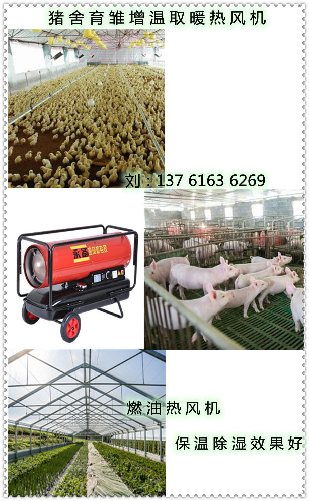 燃油热风机的优势非常多,它非常符合养殖场对温度的需求,燃油暖风机可恒温控制,双显示屏上显示设定温度,机器上有温控探头,而且可以接5-10米的温控线,当温度达到设定的值时便停止燃烧,温度一旦降下来就继续燃烧,既能保证养殖场所需要的温度,又节约燃料,是养殖场取暖非常不错的一款加热设备。