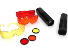 电筒2只、充电器1个、红/橙/黄眼镜各1付、红/橙/黄滤镜各1片、铝合金箱1只。