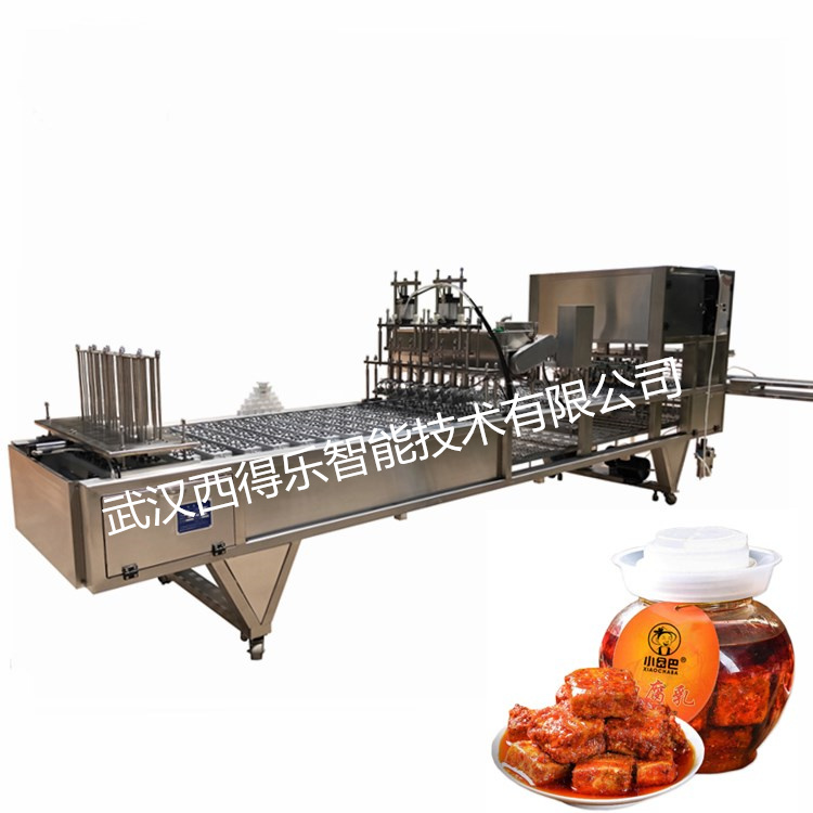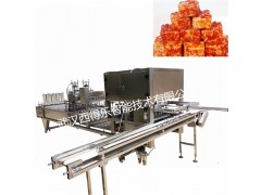 湖南豆腐乳小方杯装片膜封口机 玫瑰腐乳汁自动灌装机, 该机采用不锈钢制造,适用于各种形状的塑料盒作容器的液体灌装、封口、切边、自动控温、废料吸卷、日期打印。本厂将根据用户需要设计不同的模具、灌装、封口、剪切等机件满足用户需求。