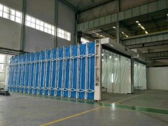 3、伸缩移动喷漆房整体为框架传动结构,每组框架间均有阻燃pvc布密封连接,安装快捷、外形美观,结构精巧,使用方便,制造成本低;