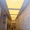 易彩光幕是由特殊高强度聚酯纤维布基制成的复合材料,解决了以往格栅式灯具直接光源以及塑料格栅的不防火问题,具有优异的光源扩散性能,可以创造出柔和舒适的空间环境。