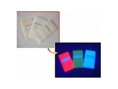 该防伪粉在普通光线下无色,在紫外灯照射下可呈现鲜艳的红、黄、绿、蓝等颜色。作为防伪原材料,它可用于制作胶印、凹印、丝印墨,并且能够适合高速运转的柔印机印刷。