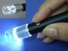 笔式数码显微镜为细长的圆柱形, 长140毫米, 直径12毫米, 前端内置微型摄像装置和LED照明, 表面安装有拍照键, 通过USB线与计算机连接即可使用, 无须专用电源。采用微型图像传感器,结合我们的专利技术多功能调焦装置,把摄像、照明、调焦和多功能插接件组合在一个纤细小巧的钢笔样空间内,并配置了多功能镜、反光镜、调焦环、大小调焦罩以及精美的支架等。是最具新颖与时尚特点的数码产品。 ▲图像分辨力:640*480(VGA) ▲调焦距离:10毫米 至 无穷远 可连续调整 ▲内置式 LED 照明 ▲扫描频率: 30fps ▲计算机接口:USB2.0 ▲摄像笔尺寸: 长145毫米 直径12毫米 ▲摄像笔重量: 96克 △本产品具有成像清晰,观察、拍照同时进行,结构精巧,使用方便,外形美观等特点;