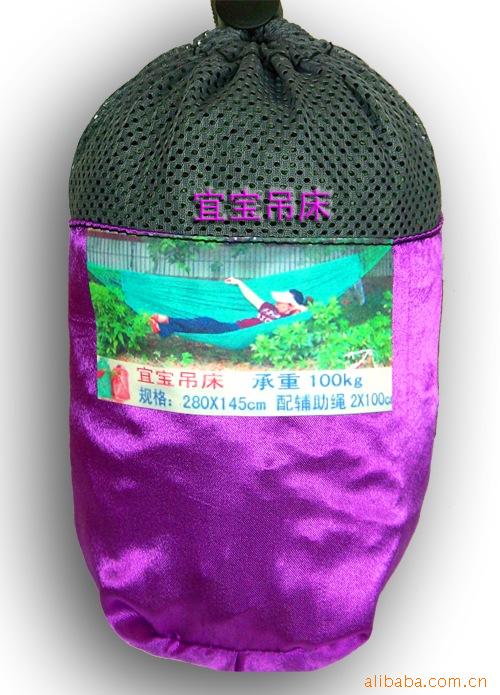 宜宝野营吊床、吊椅小额订单批发。我们生产吊床已有16年经验对产品结构、用材、工艺都很成熟 产品的性能、功能人性化设计 备有辅助绳。多功能、小包装、重量轻是户外实用型用具。