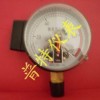 仪表由测量系统(包括接头、膜盒)、传动机构、指示装置、磁助电接头装置、外壳、调节装置及航空扦等组成。当被测介质的压力作用于膜盒时,其自由端产生相应弹性变形—位移,经拔杆带动传动机构放大,由指示装置将被测压力在仪表度盘上指示出来。同时指针带动电接头装置的活动触点与设定指针上的触头(上限或下限)相接触的瞬时,致使控制系统接通或断开电路,以达到自动控制和发信报警的目的。